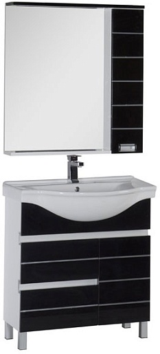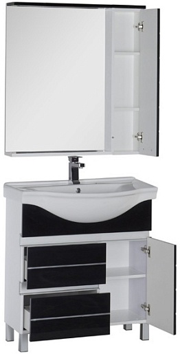 - Тумба: Aquanet Доминика 80 цв.белый (фасад черный), 2 выдвижных ящика, 1 распашная дверца (170488)