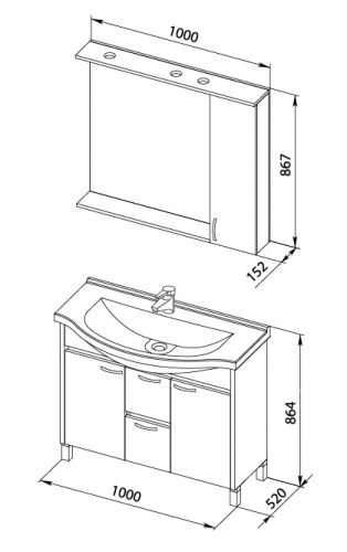 Комплектация: Тумба с раковиной, ножки, ручки.