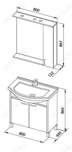 Комплектация: Тумба с раковиной, ножки, ручки.