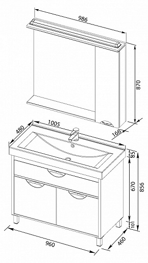 - Комплектация: Тумба с раковиной , ножки, ручки.