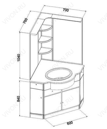Размеры ШxГxВ: 700x700x1050 мм