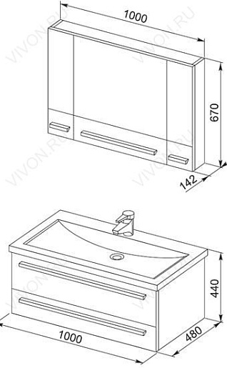 Комплектация: Тумба с раковиной (литьевой мрамор), навесы, ручки.