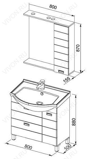 Размеры ШxГxВ: 800x155x870 мм