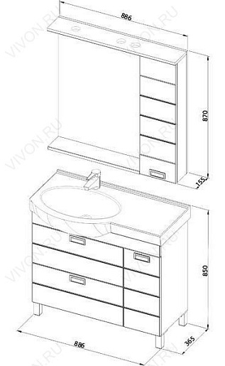 Комплектация: Тумба с раковиной (фаянс), ножки, ручки.