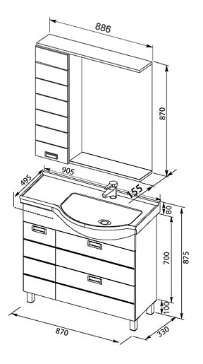 Aquanet Комплект Мебели "Сити 90" R (177537)