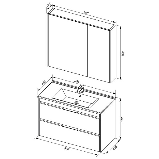 - Тумба: Aquanet Тулон 100, цвет белый, 2 выдвижных ящика (183396)