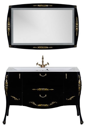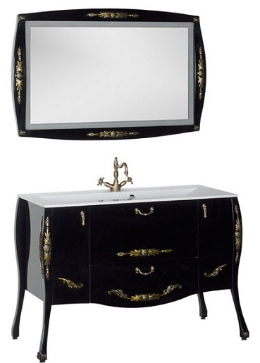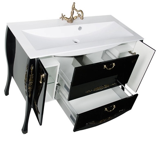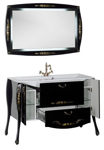 - Тумба: Aquanet Виктория 120, цвет черный глянец/золото, 2 распашные дверцы, 2 выдвижных ящика (183930)
