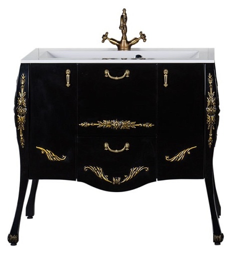 - Тумба: Aquanet Виктория 90, цвет черный глянец/золото, 2 распашные дверцы, 2 выдвижных ящика (183932)