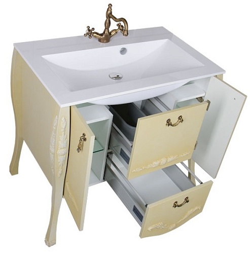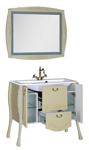 - Тумба: Aquanet Виктория 90, цвет олива, 2 распашные дверцы, 2 выдвижных ящика (182566)