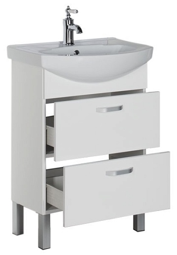 - Тумба: Aquanet Алькона 60, цвет белый, 2 выдвижных ящика (183309)