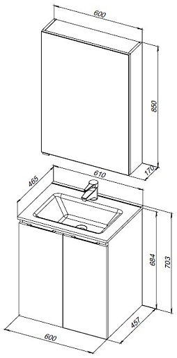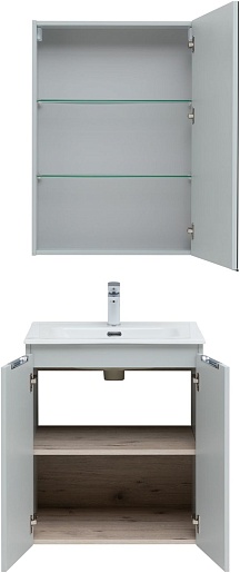 Комплектация: тумба, раковина, зеркальный шкаф, комплект креплений.