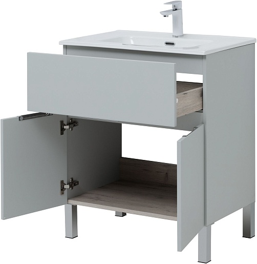 Тумба под раковину Алвита New 70 1 ящик 2 дверцы серая матовая