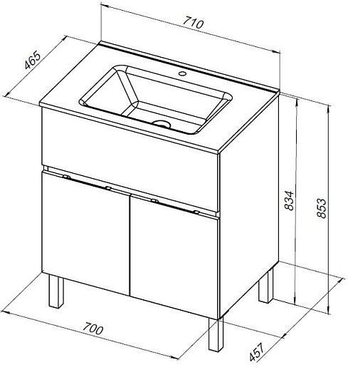 Тумба с раковиной Aquanet Алвита New 70 1 ящик 2 дверцы - арт. 303899 / 284027.