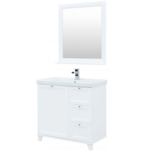 - Тумба: Амели 90 подвесная, 1 фасад 3 ящика, с двумя декоративными ножками (в комплекте) (241673)