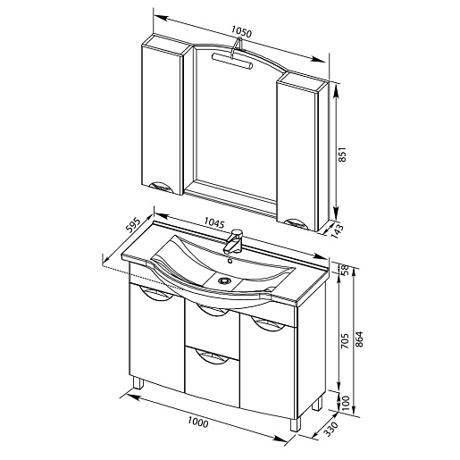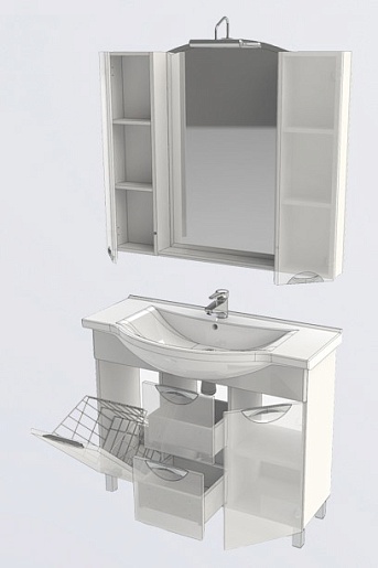 - 178240 Тумба под раковину Асти 105: 1 распашная дверца, 2 выдвижных ящика, бельевая корзина