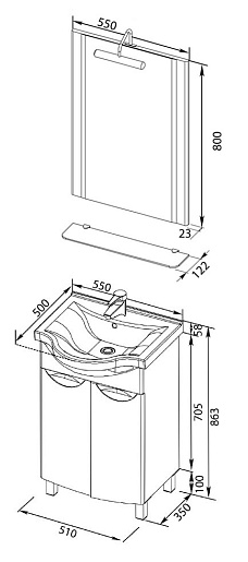 - Тумба с раковиной Асти 55 (арт. 178261) с двумя распашными дверцами, раковина EVERSON, санфаянс (177617)