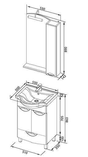 Мебель для ванной «Асти 55», арт. 180327