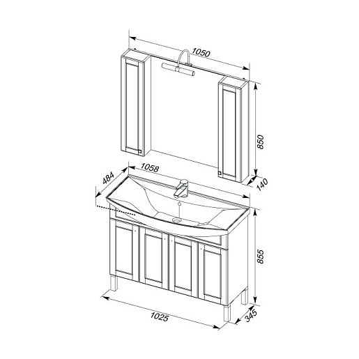 - Раковина-столешница: Элеганс 1050 с обрамлением (183609)