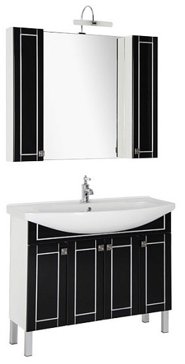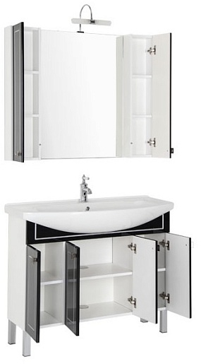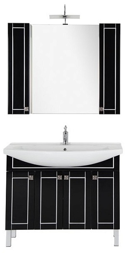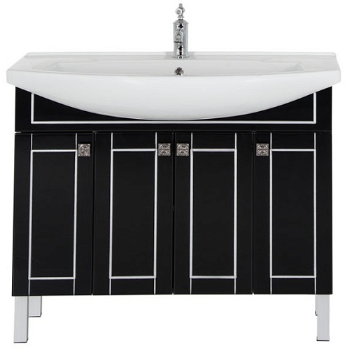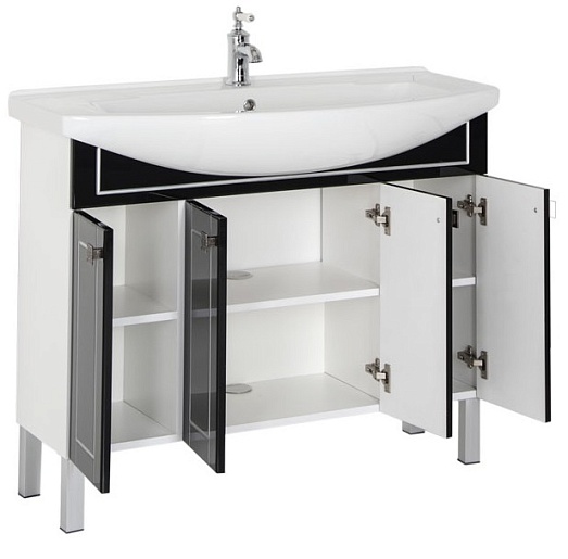 - Тумба: Aquanet Честер 105, цвет черный/серебро, 4 распашные дверцы (186096)