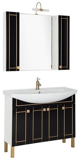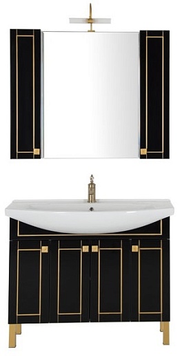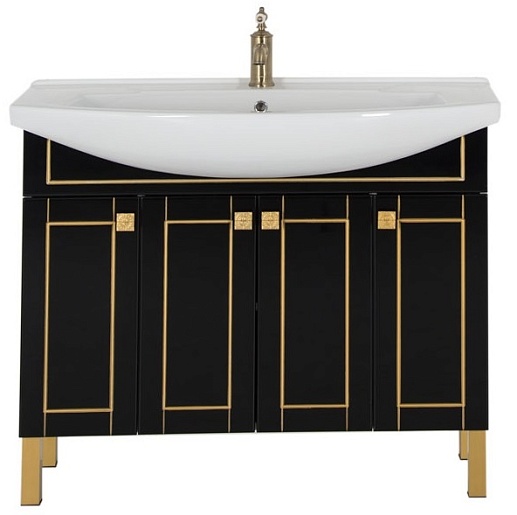 - Тумба: Aquanet Честер 105, цвет черный/золото, 4 распашные дверцы (186098)