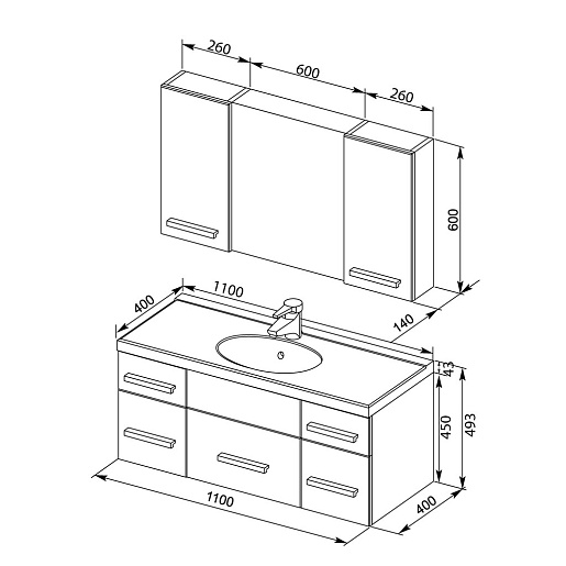 Размеры ШxГxВ: 1110х400х490 мм