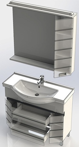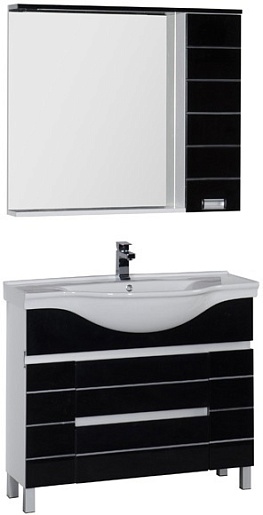- Зеркало: Aquanet Доминика 100, встроенный LED светильник, цв.белый (фасад черный), 1 распашная дверца (171923)