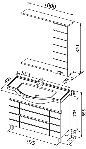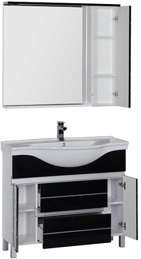 - Тумба: Aquanet Доминика 100, цв.белый (фасад черный), 2 выдвижных ящика, 2 распашные дверцы (171689)