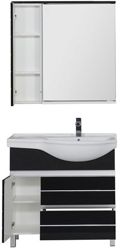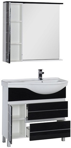 - Зеркало-шкаф Aquanet Доминика 90 черный: дверца распашная - 1 шт., светильник встроенный - 1 шт., шкафчик - 1 шт., ручка - 1 шт., полка - 1 шт.