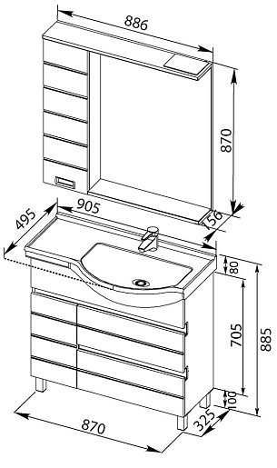 Мебель для ванной «Доминика 90» правосторонняя — арт. 176651