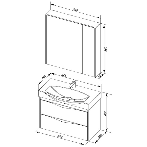 - 183053 Тумба под раковину "Франка 85" подвесная: два выдвижных ящика, метабоксы