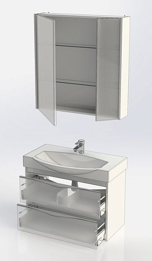 - 183046 Зеркальный шкаф "Франка 85" с распашными дверцами, полками из закаленного стекла