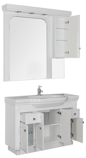 - Зеркало: Aquanet Фредерика New 125, цвет белый, 1 распашная дверца, 3 встроенных светильника LED (182012)