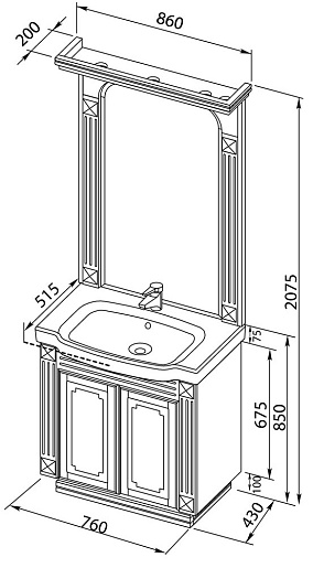 • Тумба: Aquanet Фредерика 80, цвет белый, 2 распашные дверцы, ручки с кристаллами Swarovski (170095)