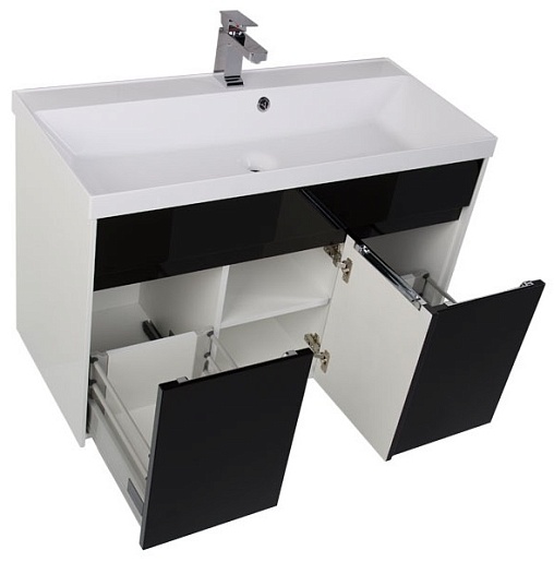 - Тумба: Aquanet Латина 100, цвет черный, 1 распашная дверца, 2 выдвижных ящика (179927)