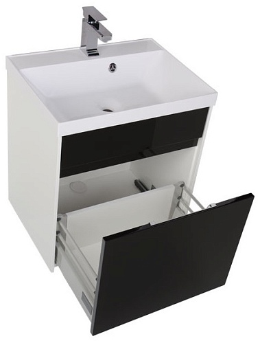 - Тумба: Aquanet Латина 60, цвет белый (фасад черный), 1 выдвижной ящик (179935)