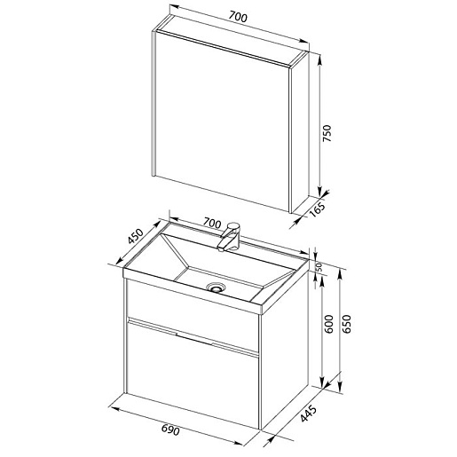 - Зеркало: Aquanet Латина 70, цвет белый, 1 распашная дверца (179997)