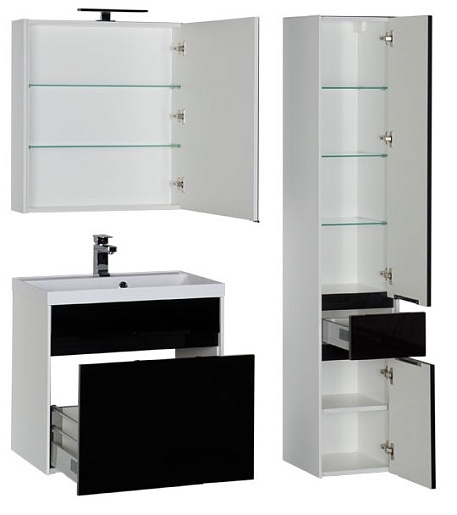 - Тумба: Aquanet Латина 70, цвет белый (фасад черный), 1 выдвижной ящик (180001)