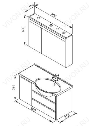 Размеры ШxГxВ: 900х370х520 мм