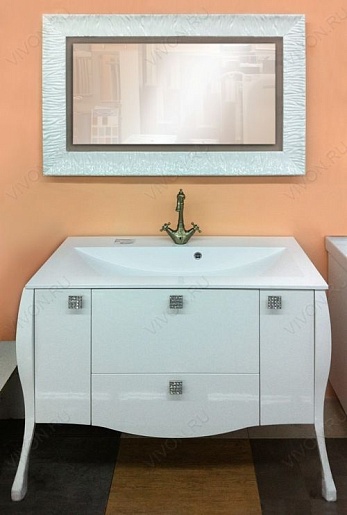 - Тумба с раковиной Aquanet Мадонна 120 белая с кристаллами Swarovski: раковина, распашная дверца - 2 шт., выдвижной ящик - 2 шт., ручка с кристаллами Swarovski - 4 шт., механизм доводчика