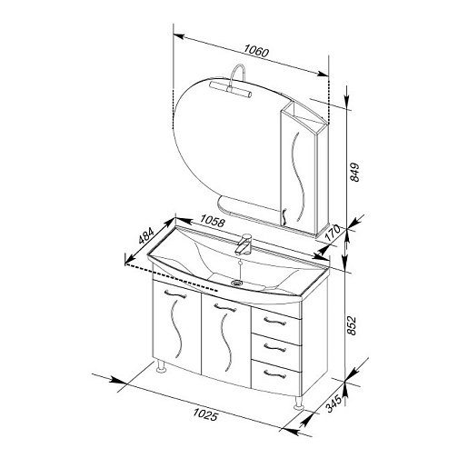 Тумба: Aquanet Моника 105, цвет белый, 2 распашных дверцы, 3 выдвижных ящика (186772)