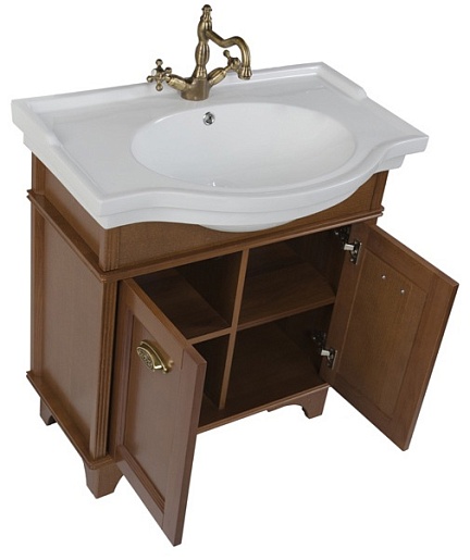 - Тумба: Aquanet Николь 80, цвет орех, 2 распашные дверцы (180511)