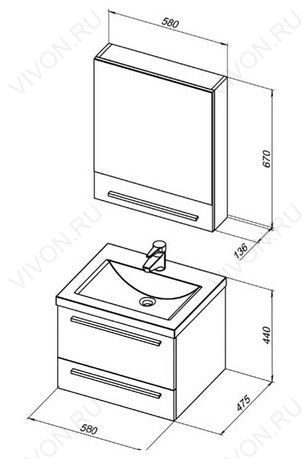 Мебель для ванной «Нота 58» камерино — арт. 165376