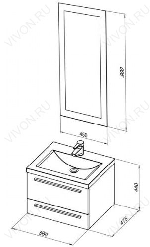 Мебель для ванной «Нота 58» лайт — арт. 159053