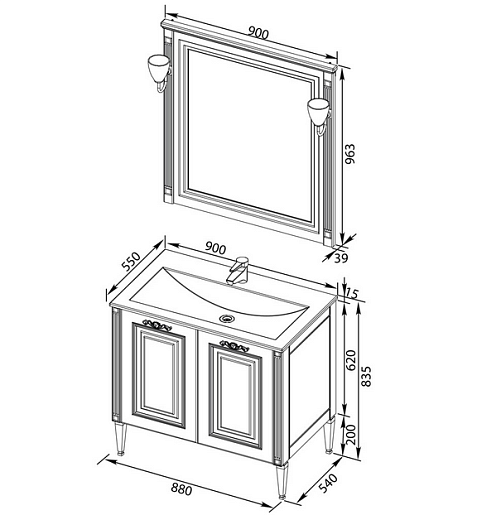 - Тумба Паола 90 цв.белый/патина золото (186116), 2 распашные дверцы, 1 стеклянная полка (181762)