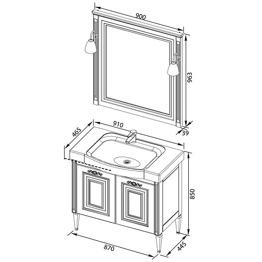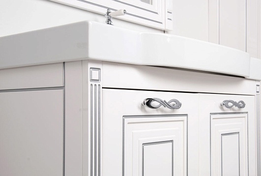 - Тумба Паола N 90 цв.белый/патина серебро (Домино) (186121), 2 распашные дверцы, 1 стеклянная полка