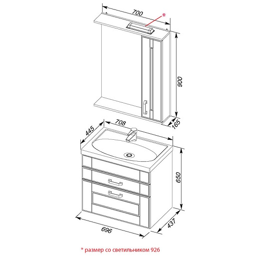 Раковина-столешница: Калипсо 700, с обрамлением (00185343)