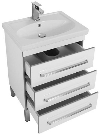 Тумба под раковину Сиена 60 напольная, ящики, белая