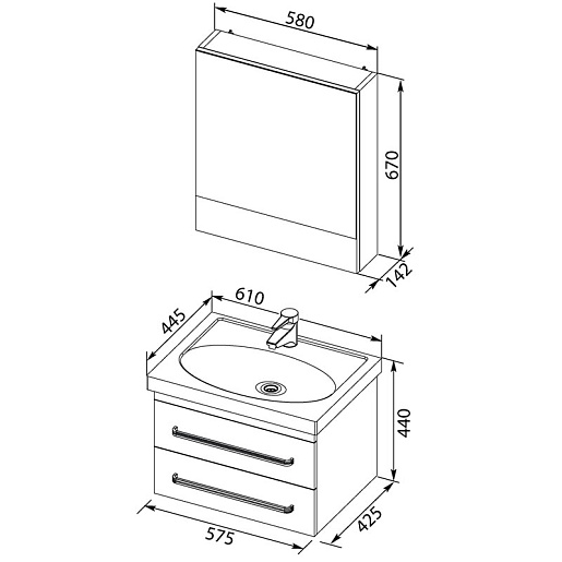 Aquanet Мебель для ванной "Сиена 60" черная подвесная (196499)