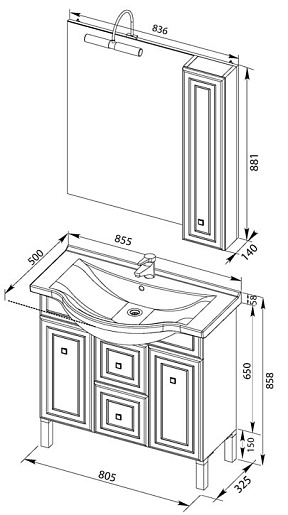 Тумба под раковину Стайл 85 ящики