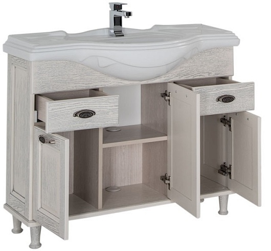 - Тумба: Aquanet Тесса 105, цвет жасмин/серебро, 3 распашные дверцы, 2 выдвижных ящика (185808)